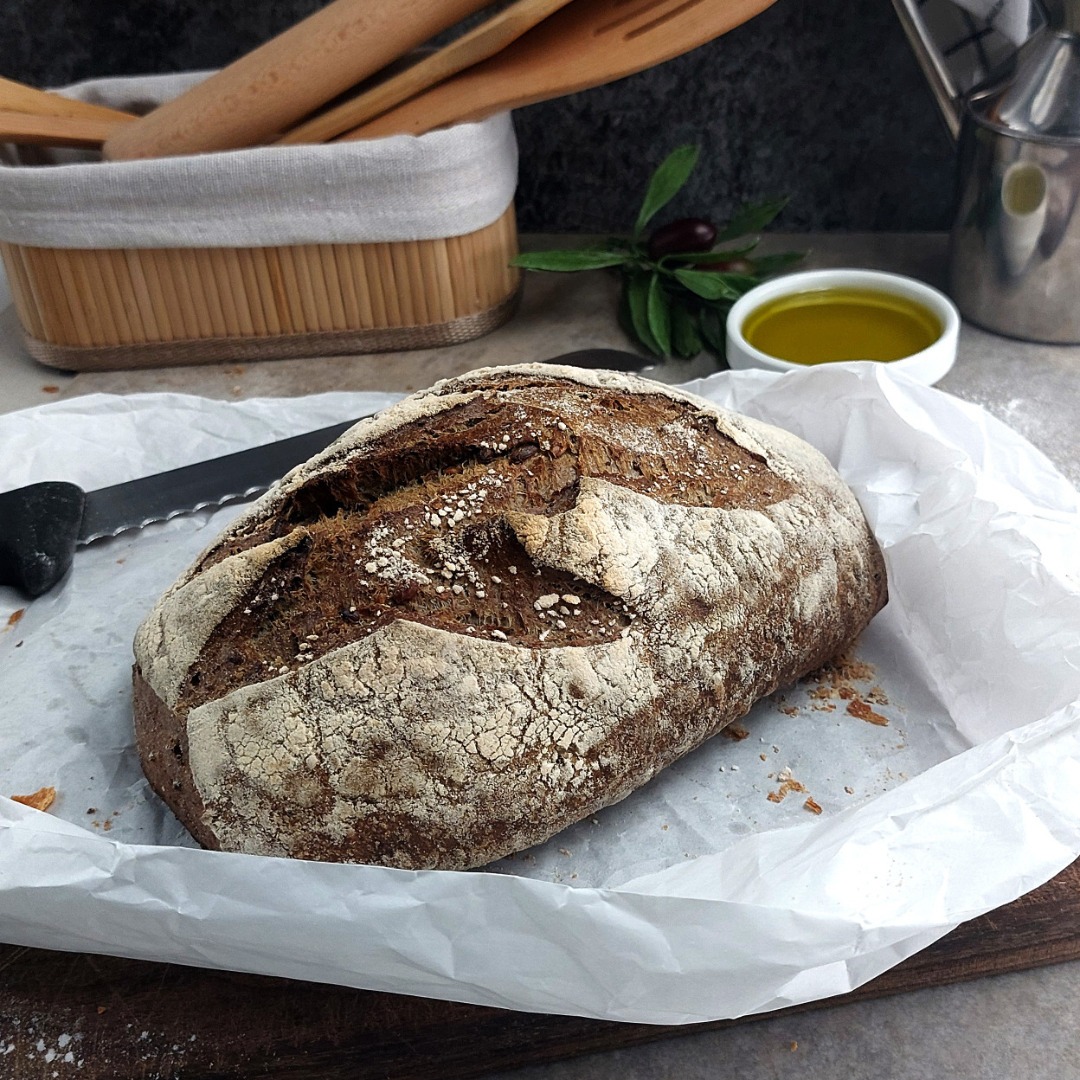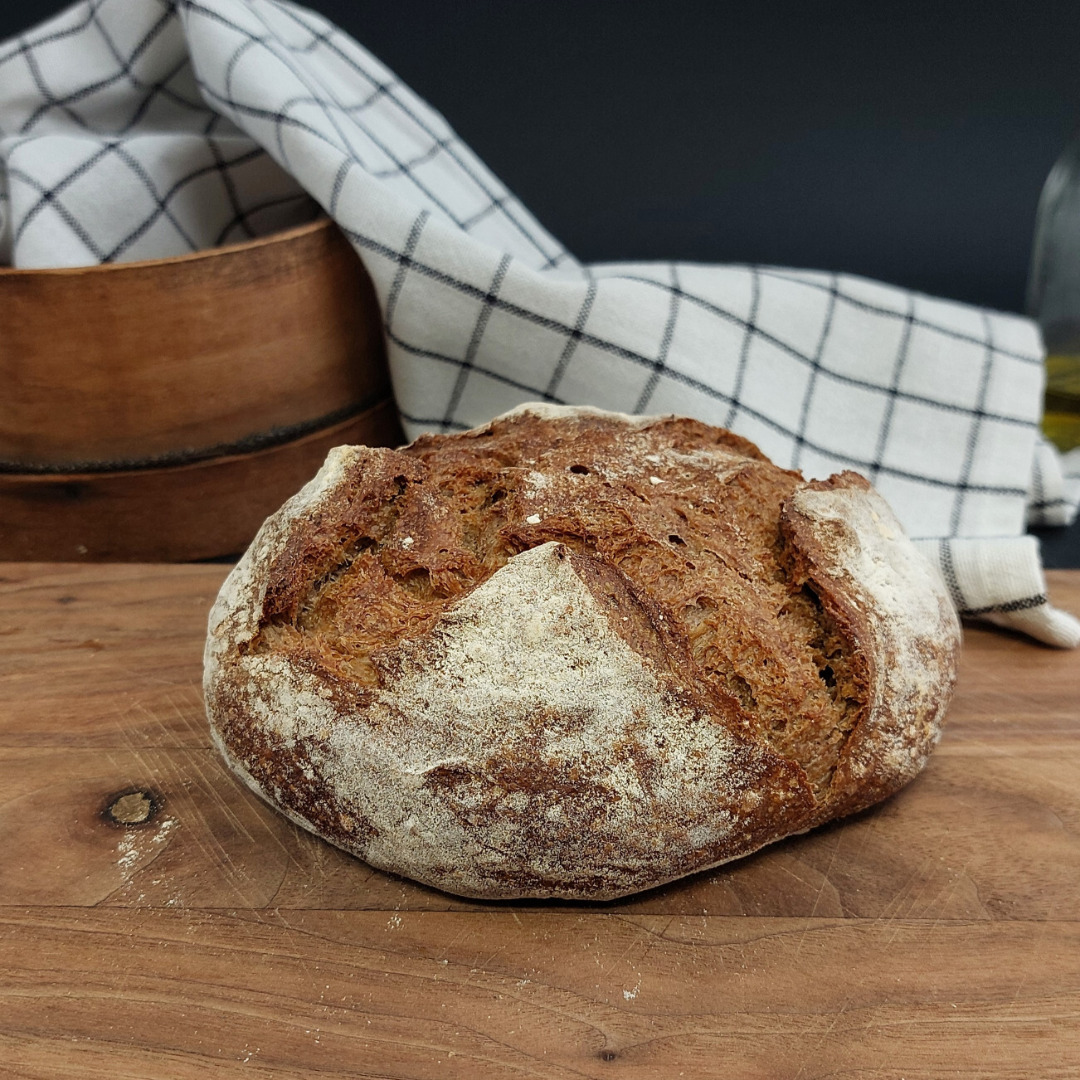 Pagnotta con farina di grano duro e lievito madreIngredienti:farina di grano durolievito madreolio d’olivagr 500